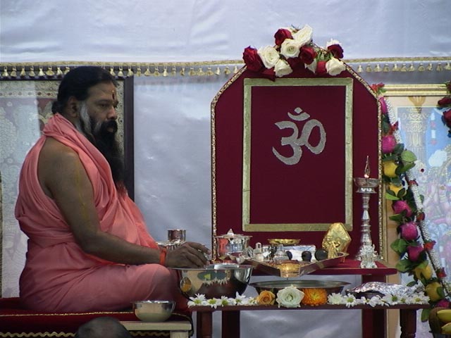 25 Июля 2003 - 11 утраКто посещал Ашрам в Майсуре? (Кое-кто поднимает руки) Кто желает посетить? (Остальные поднимают руки) Мысли должны быть позитивными. Никогда не допускайте негативных мыслей. Даже не думайте о том, что вы неудачник. Всегда думайте что вы счастливчик и рождены счастливым. Бог дал вам хороший шанс в этой жизни. Это отличная возможность отправиться в путешествие внутрь вас. Всё должно пройти сквозь Каала Чакра.Часто можно видеть людей игриво принимающих даже трудные ситуации. ОН достаточно добр для того чтобы придать силы тем, кто не принимает такие ситуации с лёгкостью. В конце всякая душа в этой вселенной должна будет вернуться назад к Брахме. Даже муравей получит Мокшу. Это Брахма Таттва. Отличие во времени. Как много рождений вам понадобится это ключевой вопрос. Разумный человек ищет более короткий путь. Все мы дети Брахмы. В творении Брахмы так много разнообразия. Почему? Потому что он так захотел. Если вы ударите мяч о стену, он отскочит назад. Чем сильнее вы бросаете, тем сильнее он отскакивает. Если вы бросаете медленно, то он отскакивает медленно. Возврат зависит от скорости ваших усилий. Подобно этому, Буддхи и Атман, которые являются самоуправляющимися компьютерами, бросают вас на путь духовности. Буддхи и Манас самосияющи. Они энергезируют себя собственным сиянием. Все мы маленькие СУРЬЯ. Закройте глаза и подумайте об этом. Постепенно вы поймёте. Однажды даже агностик осознает эту истину. Агностик будет исследовать иначе чем вы. Вы не поймёте этого. Даже аргумент неверующего это исследование. Это неверный подход, сбивающий с толку. Это не имеет значения. Это потребует времени. Неверующий так же верит во что-то. Нет неверующих. НЕТИ это слово на санскрите. Оно значит ЭТОГО НЕТ. Любое исследование должно начинаться здесь. Есть особое значение слова НААСТИКА. ВОПРОС - ведёт ли сомневающаяся натура человека к БРАХМЕ? Свамиджи - Да. Это тоже ведёт к Брахме. Но это займёт много времени. Это потребует многих рождений. Брахма в ответе за ваше спасение. ВОПРОС - Плохо ли сомневаться? Свамиджи - Сомнение это само дыхание упрямого неверующего. Ему для понимания потребуется возвращаться к рождениям снова и снова. Во время последнего рождения он осознает. Вот почему Свамиджи говорит о том, что это потребует длительного времени. Брахма хочет, чтоб вы были чистыми. Процесс очищения происходит во время рождений. В один прекрасный день он становится чистым и достигает Брахмы. После того как вскипятили молоко, вы должны вымыть сосуд. Только потому, что вы владелец, не означает, что вы не можете очистить его. Если вы не почистите, то вы не сможете использовать его повторно. Неверующий может не верить в это рождение или иметь множество сомнений. Но от рождения к рождению он очищается и, в конце концов, становится чистым. Мы путешествуем от первого рождения в виде рыбы. Затем, в процессе эволюции, вы рождались зверем, птицей и человеком. Будучи освещенной, темная комната становится светлой. Темнота преобразуется в свет. Вы застряли в этой тёмной комнате, прося о свете. Включите свет. У вас есть сила. Это как в той истории, которую мы все слышали, будучи детьми. "Старушка потеряла в гостиной иголку. Она выходит на улицу и начинает поиски под фонарём. Мальчик спрашивает её о том, что она делает. Она объясняет. Мальчик смеётся и говорит, что она не